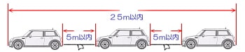 幅は自動車の幅以下、高さは地上から3.8m以下(三輪の普通車と軽自動車は高さ2.5m以下)